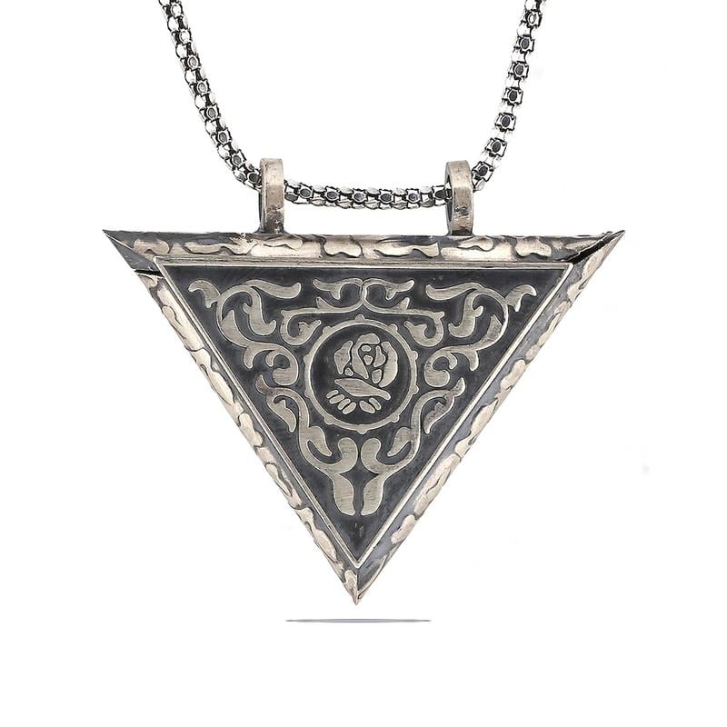 Gümüş Üçgen İçi Açılabilen Gül Muskalık Kolye