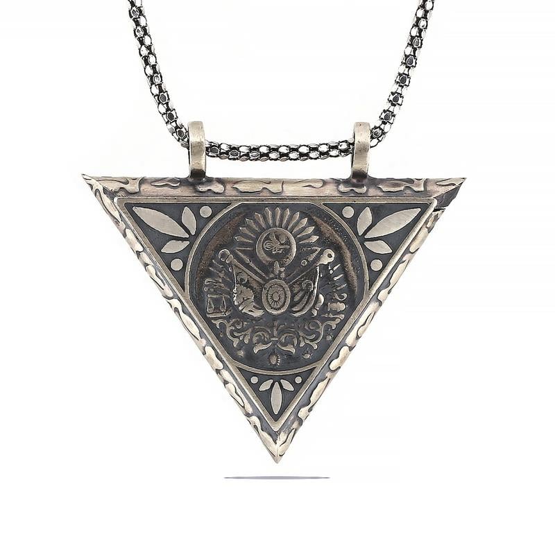 Gümüş Üçgen İçi Açılabilen Osmanlı Arma Muskalık Kolye