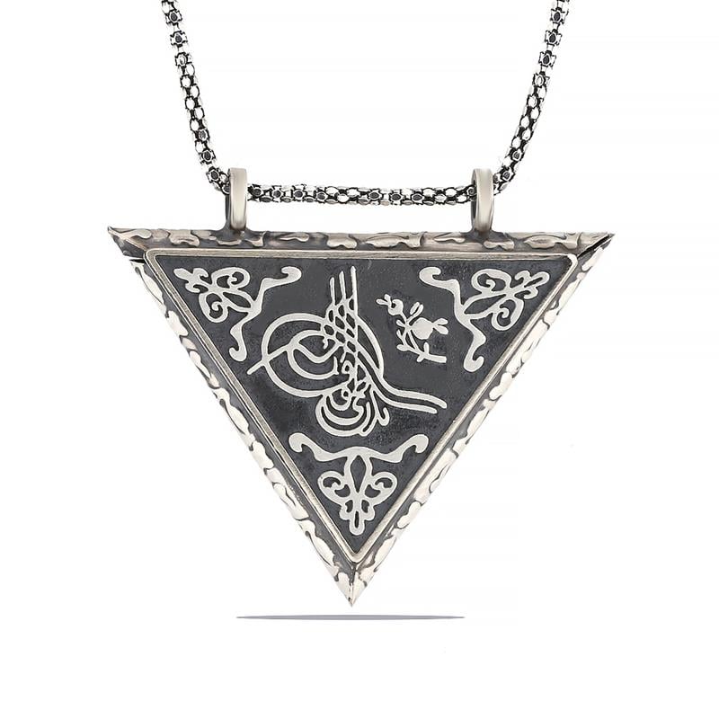 Gümüş Üçgen İçi Açılabilen Tuğra Muskalık Kolye