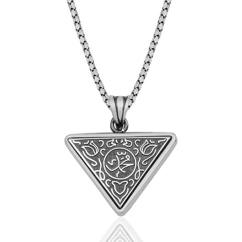 Gümüş Üçgen Muhammed Yazılı Cevşen Dualı Kolye