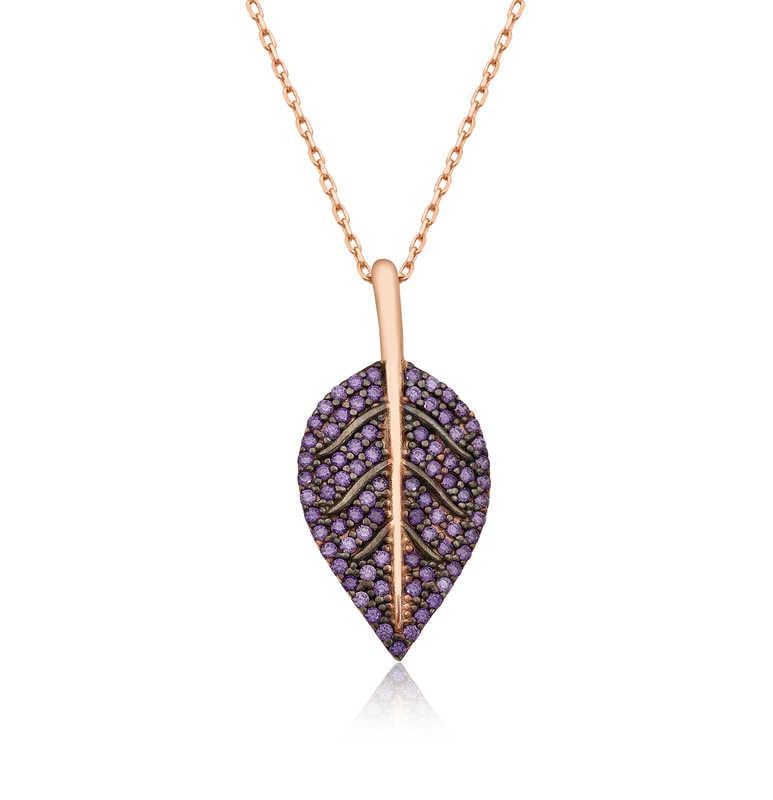 Yaprak deseni tabiattan almakta olduğu kuvveti, saygıyı ve zarafeti simgeler. Evrene olan saygıyı belirtmektedir. Çiçekler ve bununla birlikte yapraklar, insanoğluna tabiatın verdiği en güzel hediyelerdendir. Doğanın verdiği bu bereketli hediyeyi sevdiklerinizle paylaşmaya ne dersiniz? Gümüş yaprak bayan kolye sevdiklerinizin teninde hayat bulsun. Yaprak bayan kolye; 925 ayar gümüşten imal edilmiştir. Gümüş üzerine rose altın kaplama yapılmıştır. Rose altın kaplama yapılan ürünler parlaklığını uzun süre muhafaza eder, oksitlenmeyi geciktirir. Diğer gümüş kolyelerde olduğu gibi gümüş yaprak bayan kolye de tamamı el emeği ile üretilmiştir. Gümüş ve değerli taşlar nedeniyle ürün ağırlığında ± %10 sapma olabilmektedir.