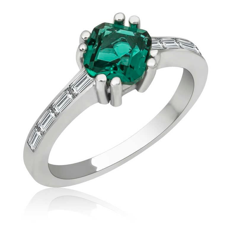 Gümüş Yeşil Baget Tek Taş Kadın Yüzük
