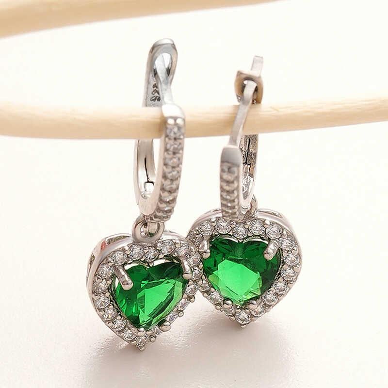 Gümüş Yeşil Taşlı Kalpli Kadın Küpe