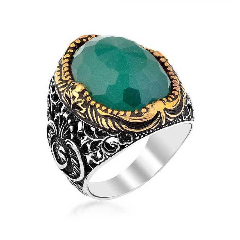 Gümüş Yeşil Zirkon Taşlı Erkek Yüzük