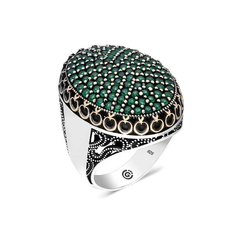 Gümüş Yeşil Zirkon Taşlı Oval Erkek Yüzük