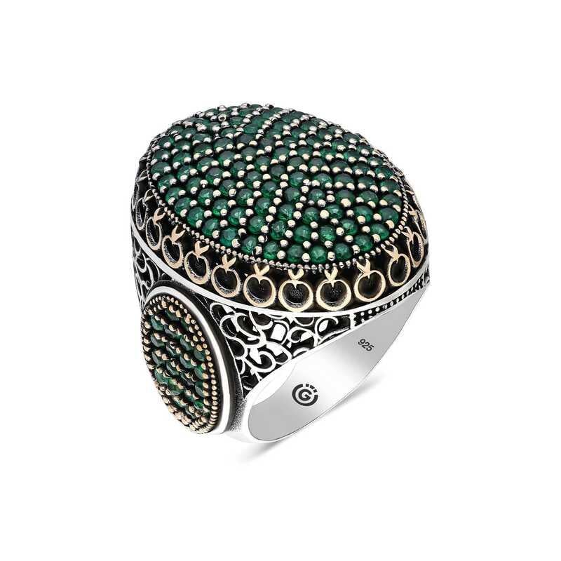 Gümüş Yeşil Zirkon Taşlı Oval Erkek Yüzük