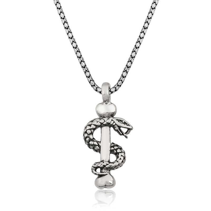 Yılanlar bilgelik ve gücü sembolize eder. Bir çok kültürde özellikle Hristiyanlıkta kutsal olarak kabul gören yılar hayatı ve hayatın gücünü temsil etmektedir. Sizde bu kolye ile gücü ve bilgeliği boynunuzda taşımaya ne dersiniz. Yılan erkek kolye 925 ayar gümüşten imal edilmiştir. Gümüş üzerine oksit kaplama yapılmıştır. Oksit kaplama yapılan gümüş kolye modelleri parlaklığını uzun süre muhafaza eder ve kararması gecikir. Gümüş zincirin uzunluğu 55 cm\"dir. Tüm erkek kolye modellerinde olduğu gibi gümüş yılan erkek kolye de el emeği ile üretilmiştir. Gümüş ve değerli taşlar nedeniyle belirtilen ürün ürün ağırlığında ± %10 sapma olabilmektedir.