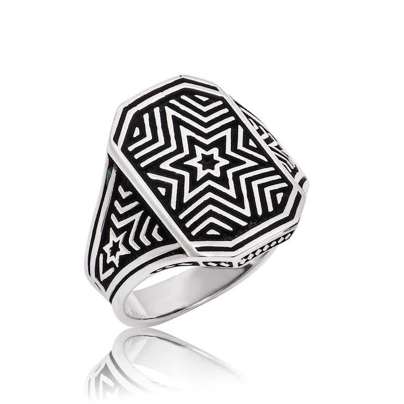 Gümüş Yıldız Desenli Erkek Yüzük (MR2350225-19)