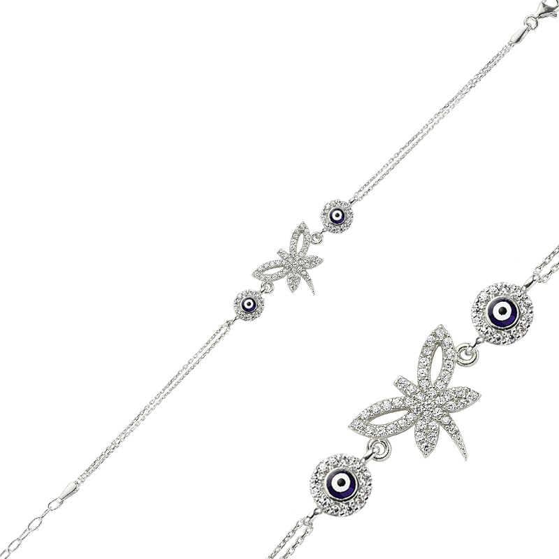 Özgürlüğü masumiyeti ve saflığı simgeleyen yusufçuklar, tertemiz sevginin ve aşkın ifadesidir. Nazar boncuğuyla süslenmiş bu şık bileklik sizin olduğu kadar sevdiklerinizin de keyifle takacağı gümüş yusufçuk bayan bileklik modeli en güzel hediyelerden biri olacaktır. Gümüş üzerine rodyum kaplama yapılmıştır. Rodyum kaplama yapılan gümüş bayan bileklik modelleri parlaklığını uzun süre muhafaza eder ve oksitlenmesi gecikir. Üzerinde bulunan taşlar zirkondur. Uzatma zinciri sayesinde her bilek kalınlığına uyar. Tüm gümüş bayan bileklik modellerinde olduğu gibi gümüş yusufçuk bayan bileklik modeli de el emeği ile üretilmiştir. Gümüş ve değerli taşlar nedeniyle belirtilen ortalama ürün ağırlığında ± %10 sapma olabilmektedir.