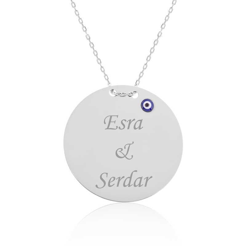 Gümüş Yuvarlak Plaka İsimli Kolye