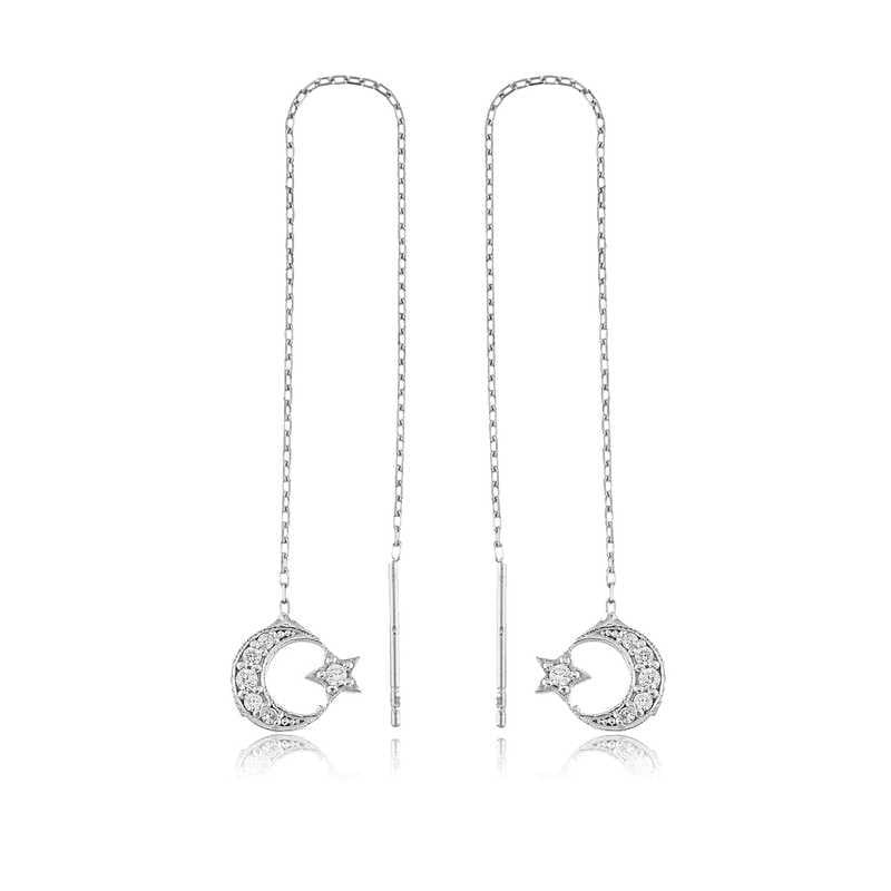 Türk bayrağının ilhamını da kan gölüne yansıyan ay ve yıldızdan aldığını biliyoruz. Bayrağın taşıdığı kutsal anlamı taşımak ve sevdiklerinizle paylaşmak için kaçırılmayacak bir fırsat sunuyoruz. Bu şık küpeyi; doğum günü hediyesi, sevgililer günü hediyesi veya annelere hediye olarak özel günlerde tercih edebileceğiniz çok şık bir seçenektir. Bu zincirli ay yıldız küpe modeli 925 ayar gümüşten imal edilmiştir. Gümüş üzerine rodyum kaplama yapılmıştır. Rodyum kaplama yapılan gümüş küpeler parlaklığını uzun süre muhafaza eder, oksitlenmesi gecikir. Üzerindeki taşlar zirkondur. Tüm bayan gümüş küpelerde olduğu gibi gümüş zincirli ay yıldız bayan küpe modeli de el emeği ile üretilmiştir. Gümüş ve değerli taşlar nedeniyle belirtilen ortalama ürün ağırlığında ± %10 sapma olabilmektedir.