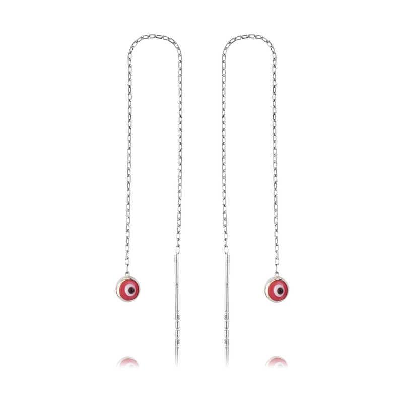 Nazar boncuğunu insanlar uzun yıllardan beri kötü bakıştan korunmak için kullanmışlardır. Kötü bakışların insanlar üzerinde olumsuz etki oluşturmasına karşı bir önlemdir nazar boncuğu… Bu sebeptendir ki insanlar sevdiklerini korumak için nazar boncuğu takmaktadır. Bu nazar küpe de şıklığı ve zarafeti yansıtıyor. Her dönem sevilen ve şıklığından ödün vermeyen bu modeli ; doğum günü hediyesi, sevgililer günü hediyesi veya annelere hediye olarak özel günlerde tercih edebilirsiniz. Zincirli pembe nazar bayan küpe, 925 ayar gümüşten imal edilmiştir. Gümüş küpe üzerine rodyum kaplama yapılmıştır. Rodyum kaplama yapılan gümüş bayan küpeler parlaklığını uzun süre muhafaza eder, oksitlenmesi gecikir. Tüm gümüş bayan küpelerde olduğu gibi bu gümüş zincirli pembe nazar bayan küpe de tamamı el emeği ile üretilmiştir. Gümüş ve değerli taşlar nedeniyle belirtilen ortalama ürün ağırlığında ± %10 sapma olabilmektedir.