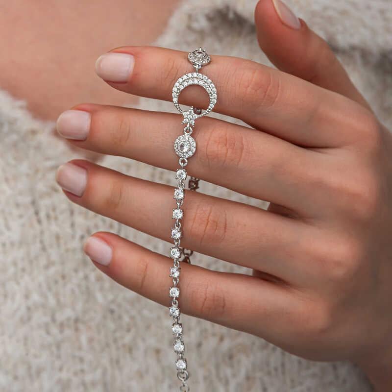Gümüş Zirkon Taşlı Ay Yıldız Kadın Bileklik