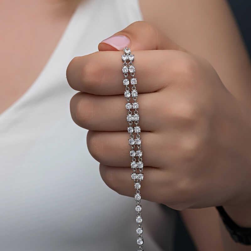 Gümüş Zirkon Taşlı Çift Sıra Kadın Bileklik