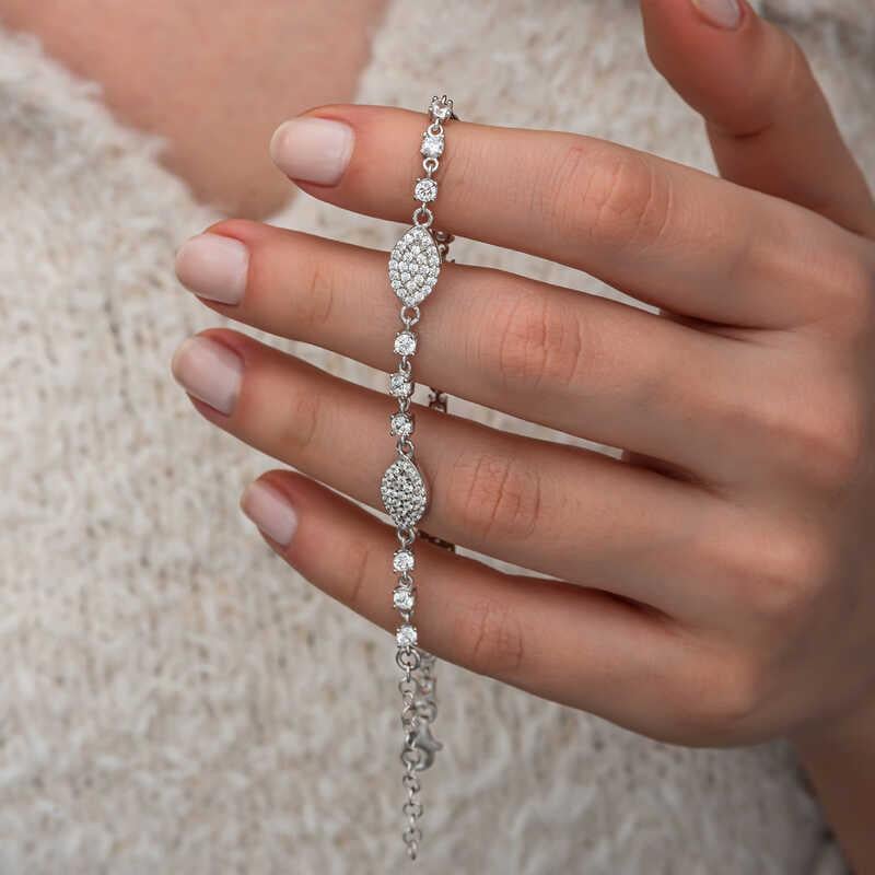 Gümüş Zirkon Taşlı Mekik Kadın Bileklik