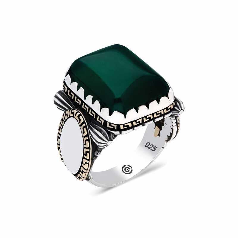 Gümüş Zirkon Yeşil Taşlı Kare Erkek Yüzük