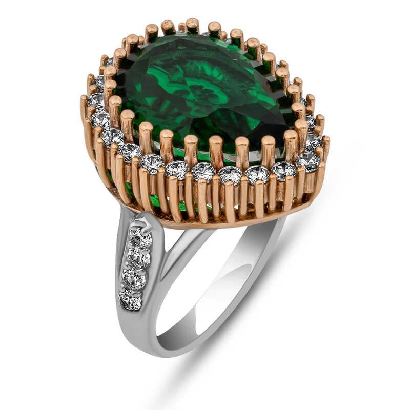 Gümüş Zümrüt Taşlı Hürrem Kadın Yüzük
