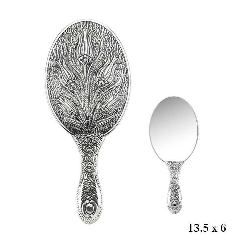 Lale Motifli El Aynası Aynalar Gümüş 925 Ayar Lale Desenli El Aynası Ürün Boyu : 13.5 cm Ürün Genişliği : 6 cm Gumush