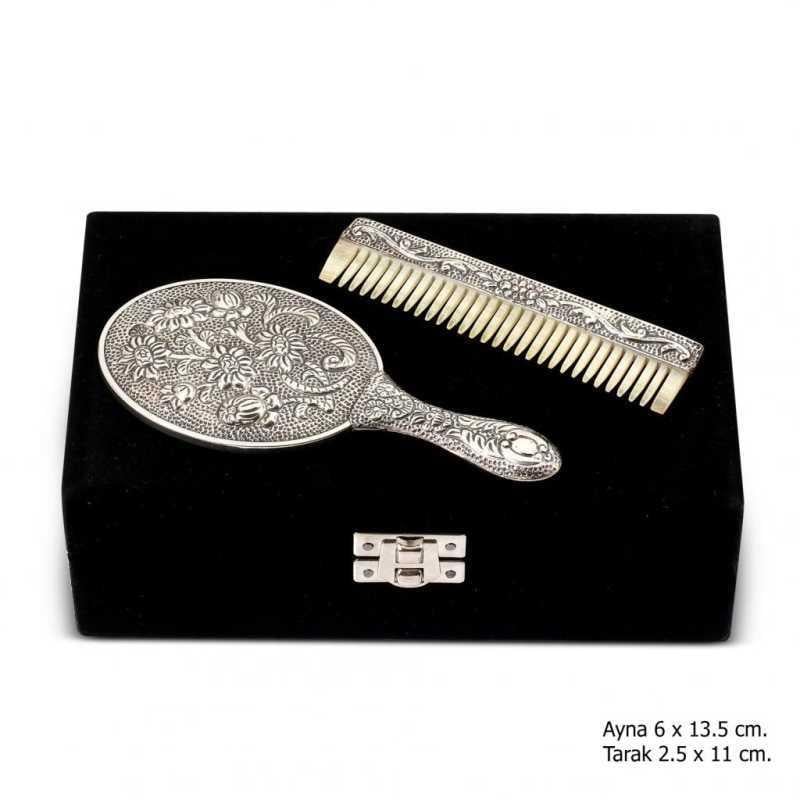 Kendine özgün desenlerdeki gümüş el aynalarımız ve taraklarımız siz ve sevdikleriniz için en güzel aksesuarlardandır.Farklı ebatları ile çantanızda taşımaya uygundur. Ürün hediye kadife kutusunda gönderilecektir. Ürünlerimizin tamamı el emeği ile üretilmiştir. ve değerli taşlar nedeniyle ürün ağırlığında ± %10 sapma olabilmektedir.Ayna Ürün Boyu : 13.50 cmAyna Ürün Genişliği: 6.00 cmTarak Ürün Boyu: 2.50 cmTarak Ürün Genişliği: 11.00 cm